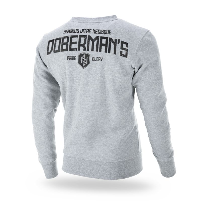 Klasická pánská mikina oblékaná přes hlavu. Zatímco vpředu je malý potisk na prsou,na zádech naopak velký potisk Dominus Vitae Necisque DOBERMAN’S doplněný o štít s runami a spojením Pride - Glory.