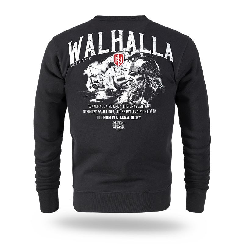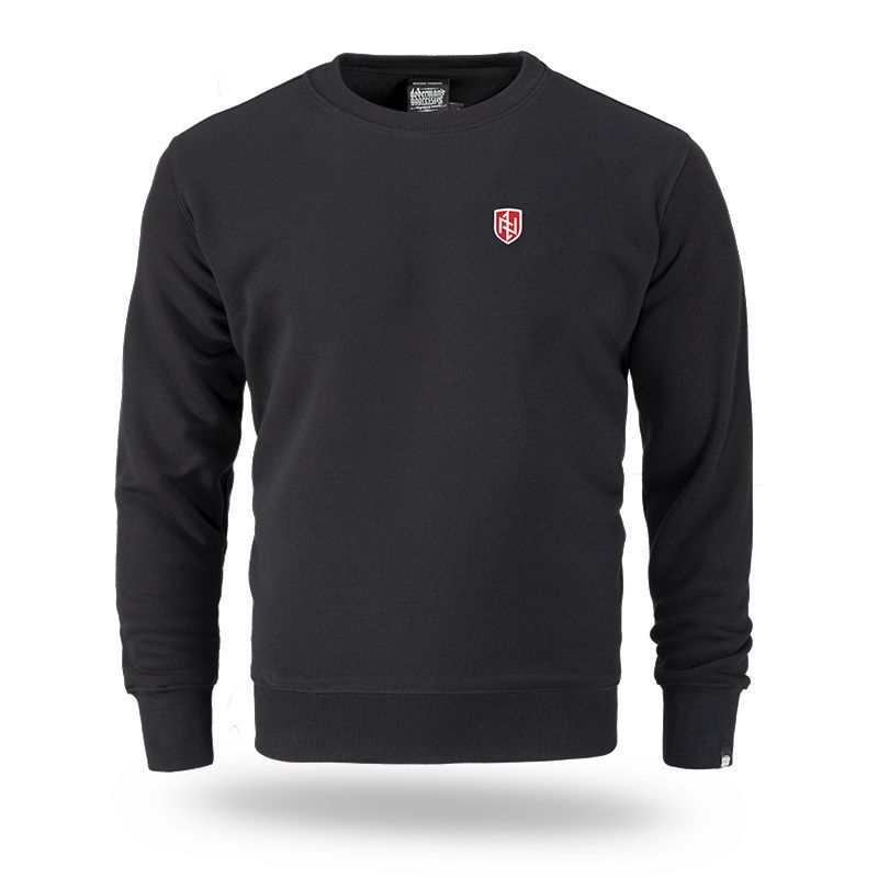 Pánská mikina oblékaná přes hlavu. Na levém rukávu je malá cedulka s logem značky. Dolní část mikiny a rukávů je zakončená širokým stahovacím lemem.