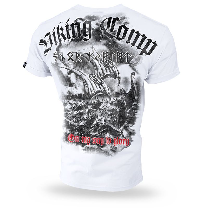 Pánské tričko ze 100% bavlny klasického střihu s krátkým rukávem. Na levém rukávu je umístěna malá cedulka s logem značky. Na přední levé straně hrudi je malý nápis Viking Comp doplněn runovými symboly. Zadní část potisku vyobrazuje lodě Vikingů na rozbouřeném moři s nápisem Viking Comp - On my way to glory.