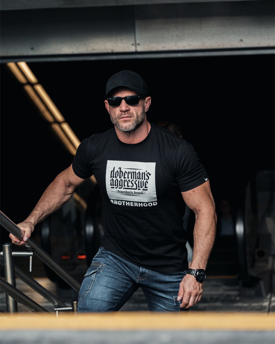 Pánská mikina oblékaná přes hlavu. Na levém rukávu je malá cedulka s logem značky. Dolní část mikiny a rukávů je zakončená širokým stahovacím lemem. Na přední straně mikiny je velký nápis DBNS.Na přední straně trička potisk Doberman´s Aggressive Brotherhood.