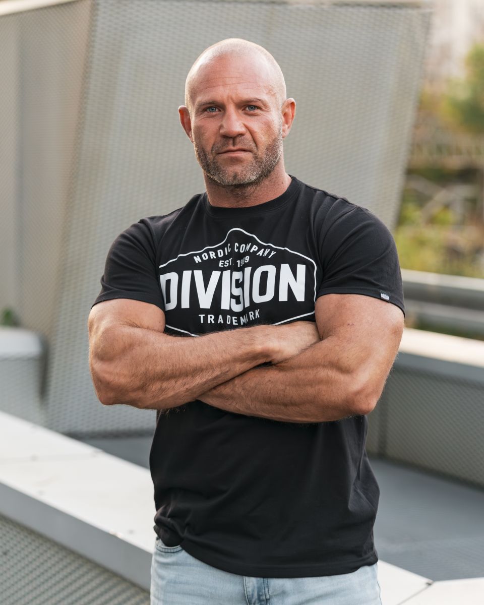 Pánské tričko klasického střihu s dlouhým rukávem ze 100% bavlny. Na hrudníku velký potisk Division.