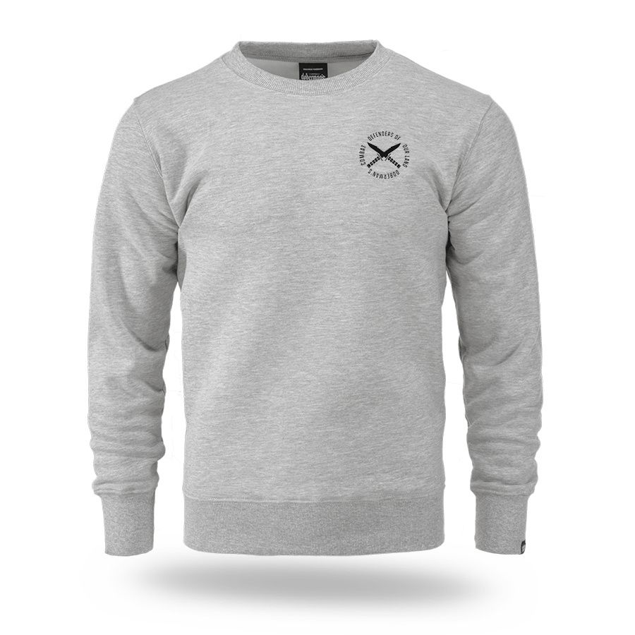 Klasická pánská mikina oblékaná přes hlavu. Na levém rukávu je malá cedulka s logem značky. Dolní část mikiny a rukávů je zakončená širokým stahovacím lemem.