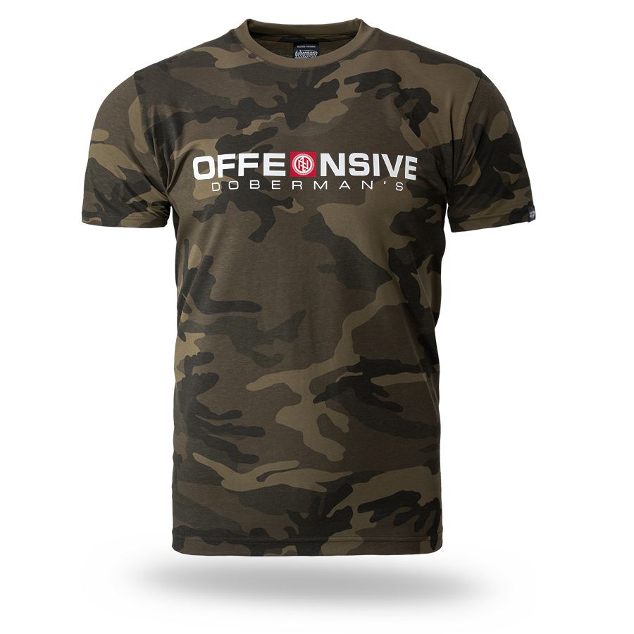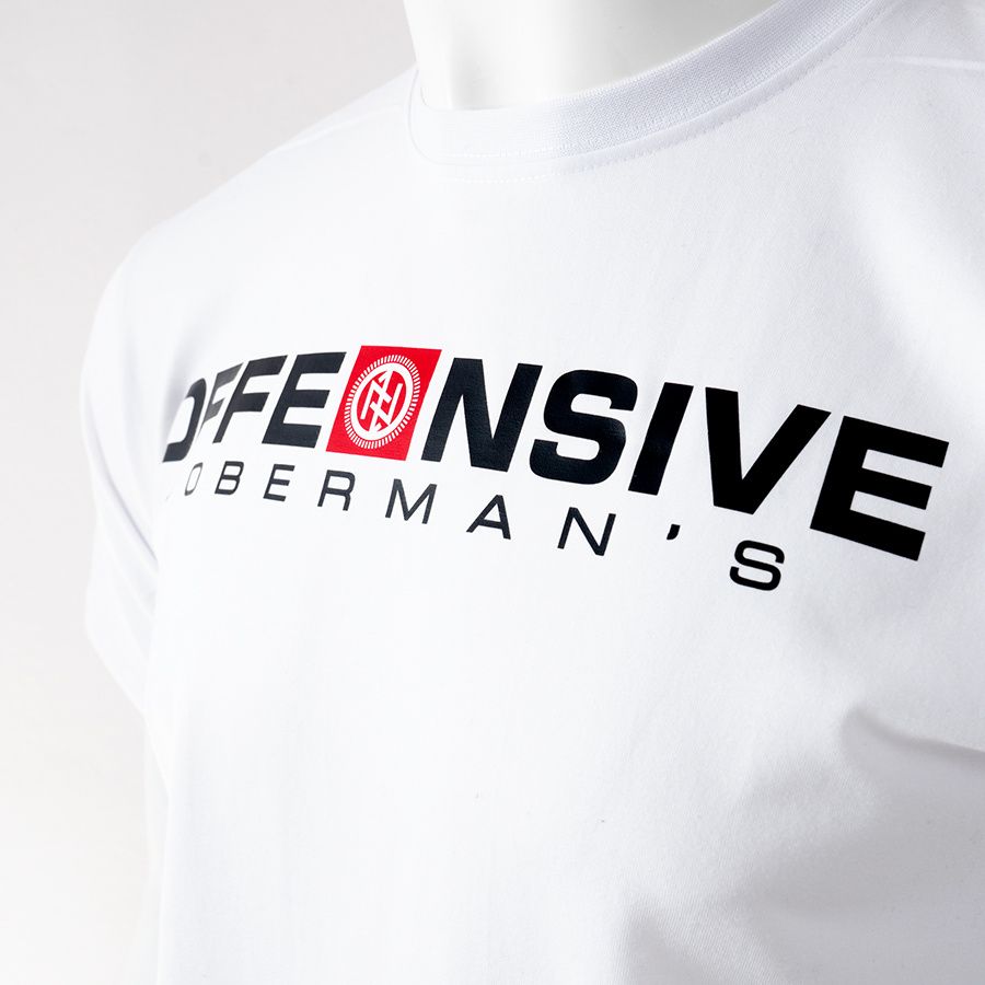 Pánské tričko ze 100% bavlny klasického střihu s krátkým rukávem. Na levém rukávu je umístěna malá cedulka s logem značky. Na hrudníku velký potisk Offensive Doberman´s.