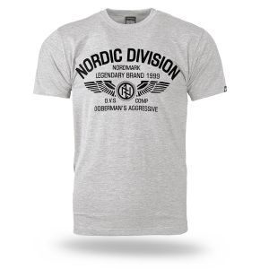 Pánské tričko ze 100% bavlny klasického střihu s krátkým rukávem. Na levém rukávu je umístěna malá cedulka s logem značky. Na hrudníku velký potisk Nordic Division.