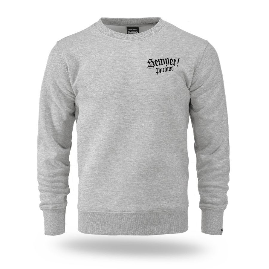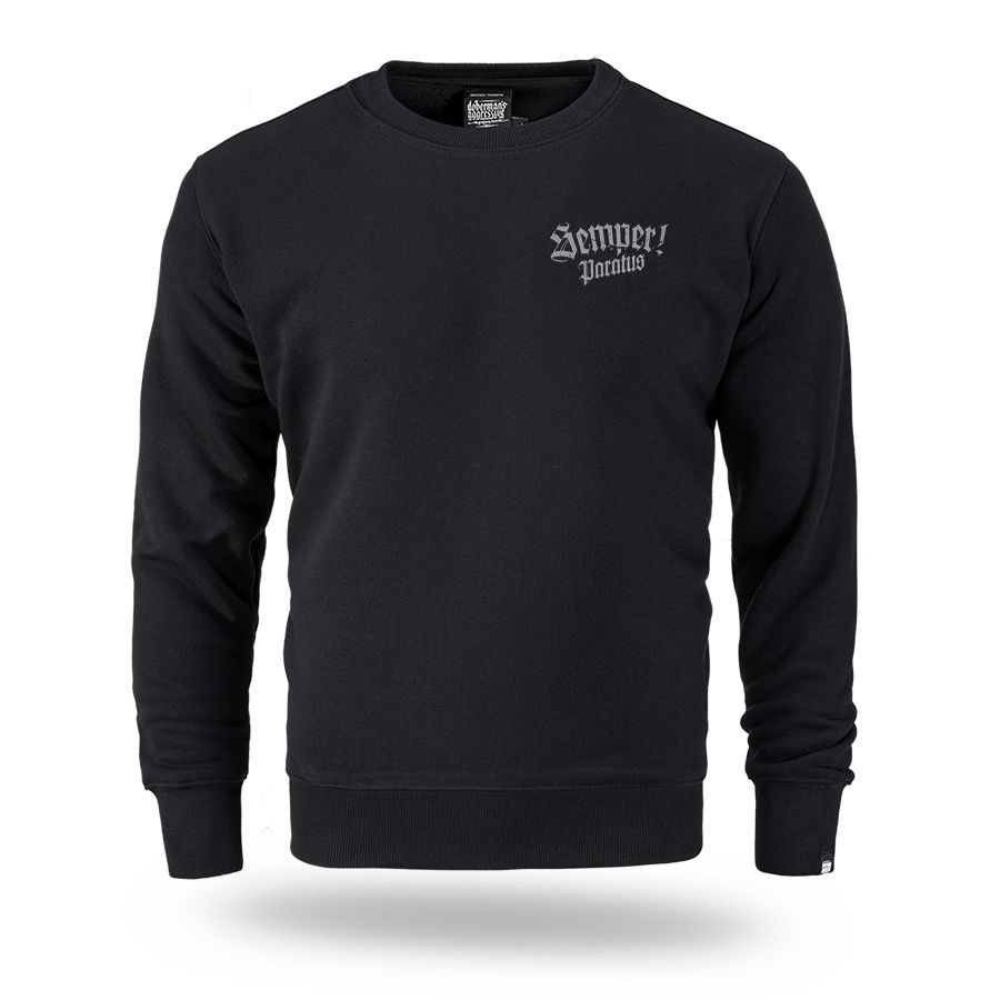 Klasická pánská mikina oblékaná přes hlavu. Na levém rukávu je malá cedulka s logem značky. Dolní část mikiny a rukávů je zakončená širokým stahovacím lemem. Vpředu a vzadu potisk Semper Paratus.