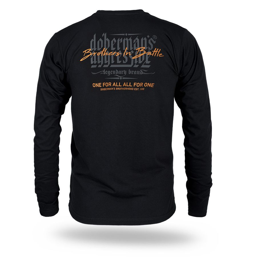 The model is made in a comfortable classic cut with a round neckline and long sleeves. On the back there is a large print with the inscription “Doberman’s Aggressive – Brothers in Battle” and the slogan “One for all, all for one”, referring to brotherhood, loyalty and unity. The shirt was designed for everyday use, combining comfort with the distinctive style of the Doberman’s Aggressive brand. The classic cut ensures freedom of movement and a good fit to the body.