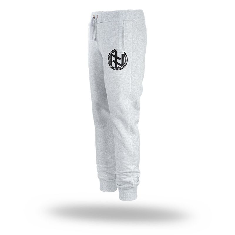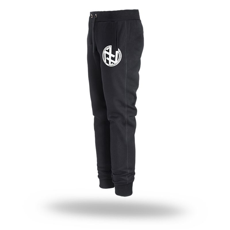 Cotton sweatpants with two side pockets and straight leg. Elastic cuff and strings by the waist. On the front of the left leg there is a one-color print with runic signs placed below the pocket. The “Full Contact L.T.D Doberman's” sign applied around. Doberman's Aggressive sports collection.