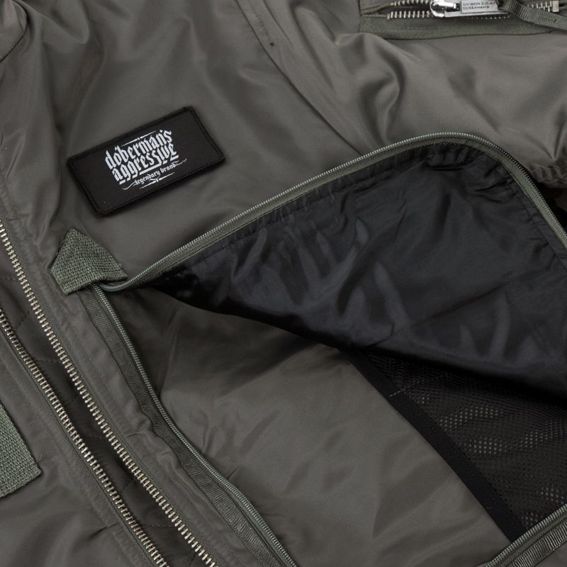 If you are not 100% sure about your size, we recommend choosing a size larger than you usually wear! Military style jacket with quilted, insulated lining, made of waterproof material, finished with wide cuffs. On the left sleeve, there is a pocket with a zipper and a red OFFENSIVE tag. A large, sliding pocket at the front of the jacket and two smaller pockets with velcro closure. On the chest there is an embroidered Velcro patch with the Dobermans Aggressive logo.