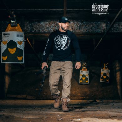 Men's classic sweatshirt worn over the head. Made of high quality cotton. The bottom of the sweatshirt and sleeves are finished with a wide welt. Left sleeve with small Doberman's Aggressive label sewn on.