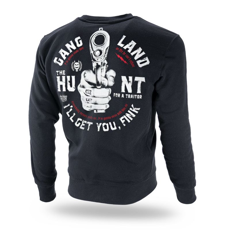 Classic men’s sweatshirt that is worn over the head. Made of high quality cotton. The bottom of the sweatshirt and the sleeves are provided with a wide cuff. On the left sleeve a small brand logo tag. The Gangland model with a distinctive graphic on the back showing the gun and the original Doberman’s lettering. On the front, a smaller graphic that refers to the back of the sweatshirt.