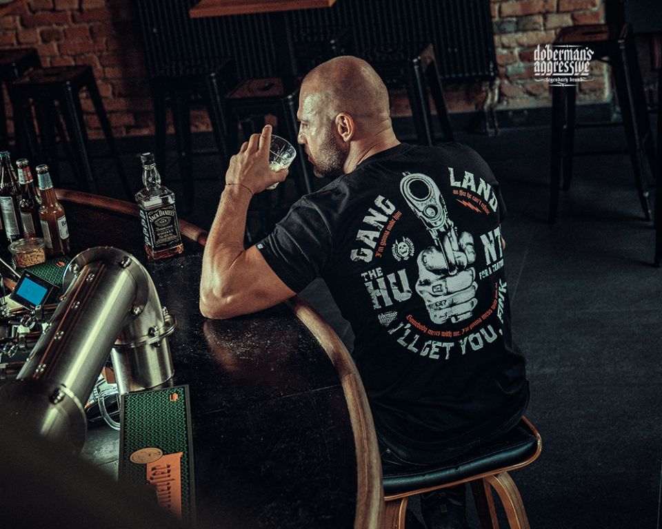 Classic men’s sweatshirt that is worn over the head. Made of high quality cotton. The bottom of the sweatshirt and the sleeves are provided with a wide cuff. On the left sleeve a small brand logo tag. The Gangland model with a distinctive graphic on the back showing the gun and the original Doberman’s lettering. On the front, a smaller graphic that refers to the back of the sweatshirt.