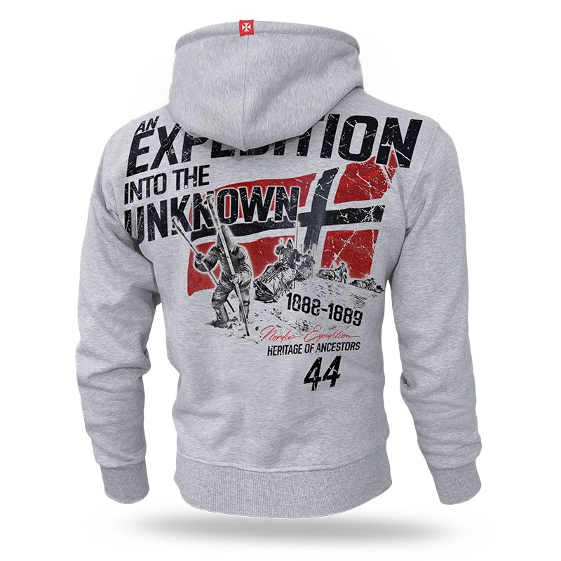 Hoodie,zip "Unknown Expedition" - grey