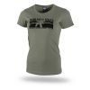 Women's T-shirt in a simple style. T-shirt made of high quality cotton. On the left sleeve is a small label with a logo. On the front of the shirt is a machine gun graphic, additionally the inscription PROBLEM SOLVER.
