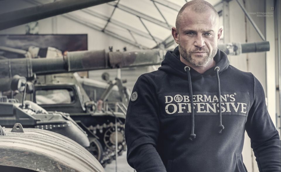 Pouch pocket hoodie from the new Dobermans Aggressive fall – winter 2018 collection. The material from which the clothing is made is 100% cotton that weighs 300g. A large hood covers the head well and can be adjusted using the strings. The string ends at the hood bear the Dobermans logo. Inside there is a large patch company label, and on the left sleeve there’s a small label with the brand logo. A large pouch pocket on the front. On the pocket, there’s a large cotton fabric with the Dobermans Offensive print. The print is made with 3D technology. On the bottom welt, there is a tag with the logo of the military line.