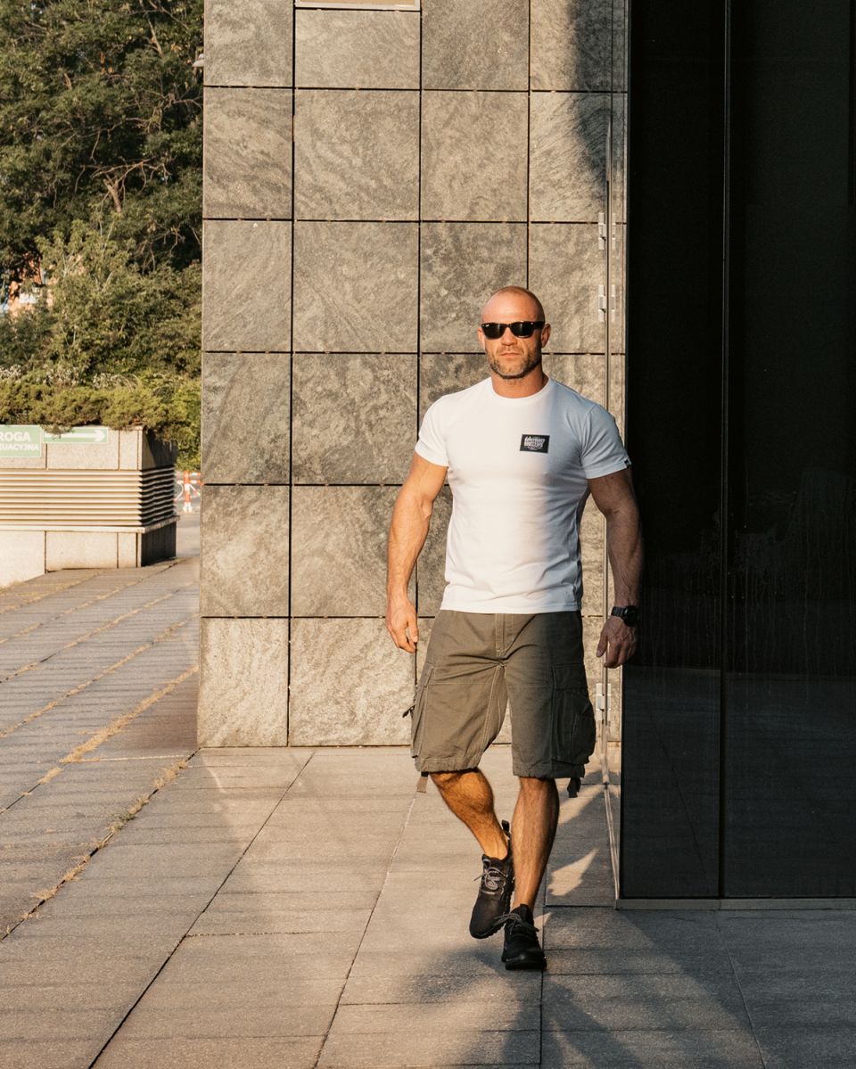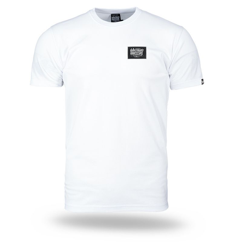 Clothing made of cotton with a weight of 200g. On the left sleeve is a small label with the logo Doberman’s Aggressive. On the front of the shirt on the left chest there is the brand logo made as an imitation of the patch sewn with a thin thread. The whole gives a very interesting effect.