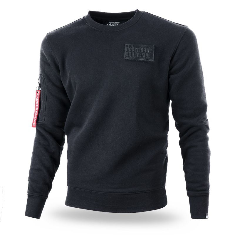The embroidered applique with the Doberman’s Aggressive logo is attached to the chest with Velcro. The end of the sweatshirt and sleeves is finished with a wide drawstring hem.