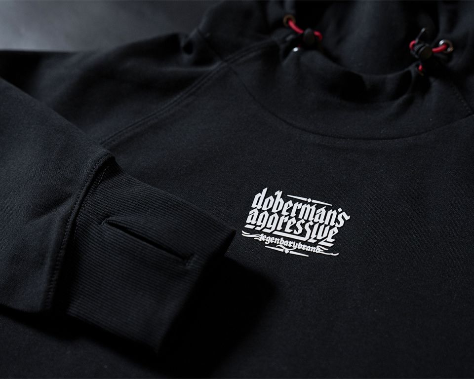 Men's regular fit sports hoodie with a high collar, hood, and thumbhole sleeves. Made of high-quality material, ensuring comfort and warmth. The model features an adjustable hood with drawstrings, a kangaroo pocket in which two additional zipped pockets are hidden, and elastic cuffs with thumbholes for enhanced convenience. A subtle brand logo is placed on the front, while a rubber brand logo patch is located on the sleeve. The hoodie is perfect for outdoor activities and everyday wear.