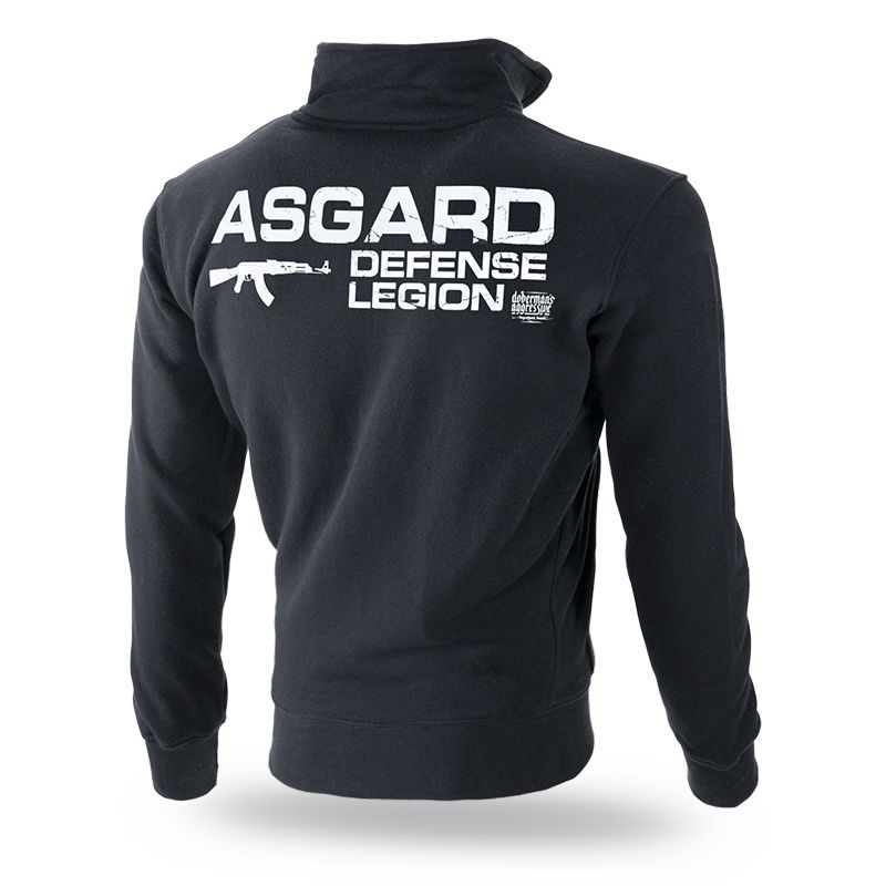 Model sweatshirt with zipper and high collar. The bottom of the sweatshirt and sleeves finished with strong ribbing. The sweatshirt is made of high quality cotton. Asgard model with the inscription "Asgard Defense Legion" on the back The text is directed at the rifle, the graphic is complemented by the Doberman’s logo printed on the front in a smaller format.