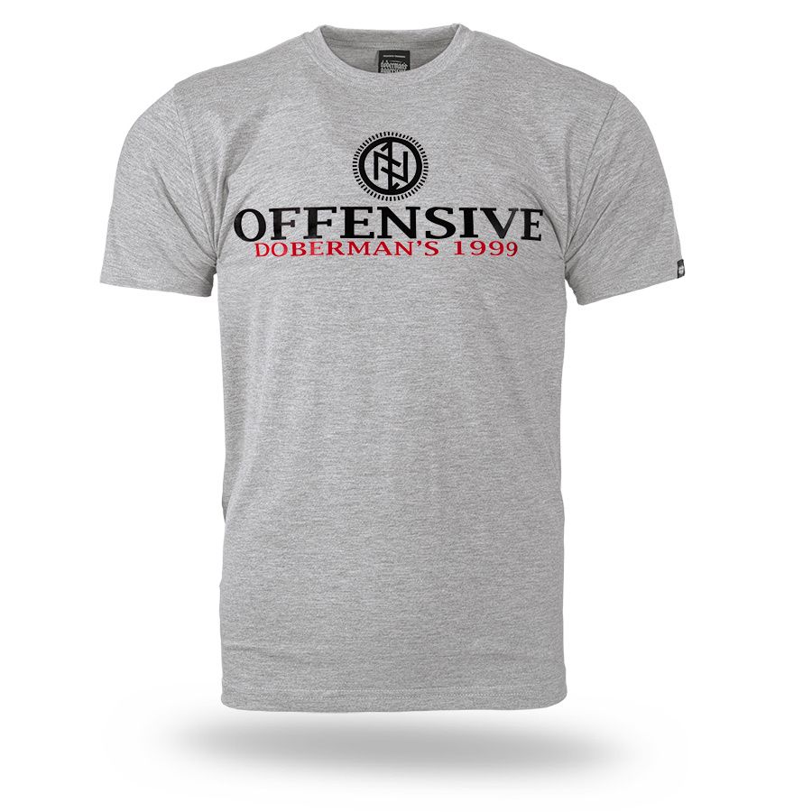 Model with a round neckline finished with a ribbed trim and short sleeves, ensuring everyday comfort. The front features a bold print with a large “OFFENSIVE” lettering, complemented by the slogan “Doberman’s 1999” and the brand’s distinctive symbol placed centrally above the typography. The back of the T-shirt remains plain, emphasizing the minimalist character of the cut and highlighting the strong sport-street accent on the front.