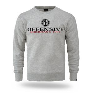 Model with a round neckline finished with a ribbed trim, as well as ribbed cuffs and hem, ensuring a good fit and wearing comfort. The front features a bold print with a large “OFFENSIVE” lettering, complemented by the slogan “Doberman’s 1999” and the brand’s distinctive symbol placed centrally above the typography. The back of the sweatshirt remains plain, emphasizing the minimalist character of the cut and highlighting the strong sport-street accent on the front.