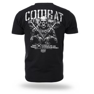 Short-sleeve pullover model with a round neckline finished with elastic ribbing. The back features a large, bold print with a tactical motif and the slogan “Combat – Built for the Frontline,” along with additional details emphasizing the military-inspired character of the collection. The front includes a smaller emblem on the chest referring to the main graphic. The cut ensures comfort and freedom of movement, making it suitable for everyday wear as well as outfits inspired by military style.