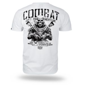 Short-sleeve pullover model with a round neckline finished with elastic ribbing. The back features a large, bold print with a tactical motif and the slogan “Combat – Built for the Frontline,” along with additional details emphasizing the military-inspired character of the collection. The front includes a smaller emblem on the chest referring to the main graphic. The cut ensures comfort and freedom of movement, making it suitable for everyday wear as well as outfits inspired by military style.