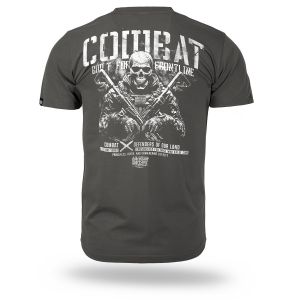 Short-sleeve pullover model with a round neckline finished with elastic ribbing. The back features a large, bold print with a tactical motif and the slogan “Combat – Built for the Frontline,” along with additional details emphasizing the military-inspired character of the collection. The front includes a smaller emblem on the chest referring to the main graphic. The cut ensures comfort and freedom of movement, making it suitable for everyday wear as well as outfits inspired by military style.