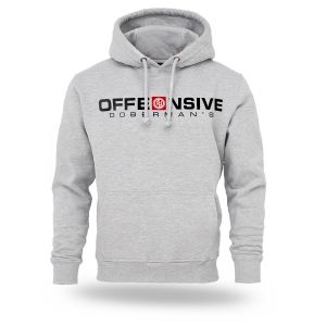 Pullover model equipped with an adjustable hood with drawstrings and a practical kangaroo pocket on the front. The chest features a bold “OFFENSIVE DOBERMAN’S” print with the brand’s distinctive emblem, emphasizing the dynamic and strong character of the collection. The hem and cuffs are finished with elastic ribbing to ensure a good fit and wearing comfort. The simple cut combines everyday comfort with a powerful, recognizable graphic accent.