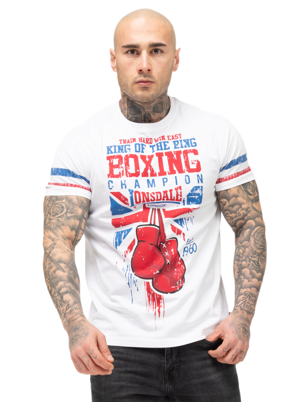 - t-shirt with a crewneck and various logo prints on the front, sleeves and neck. The neckline is bordered with an elastic ribbed cuff and there is a small label on the side seam