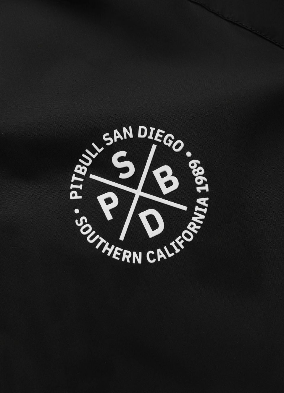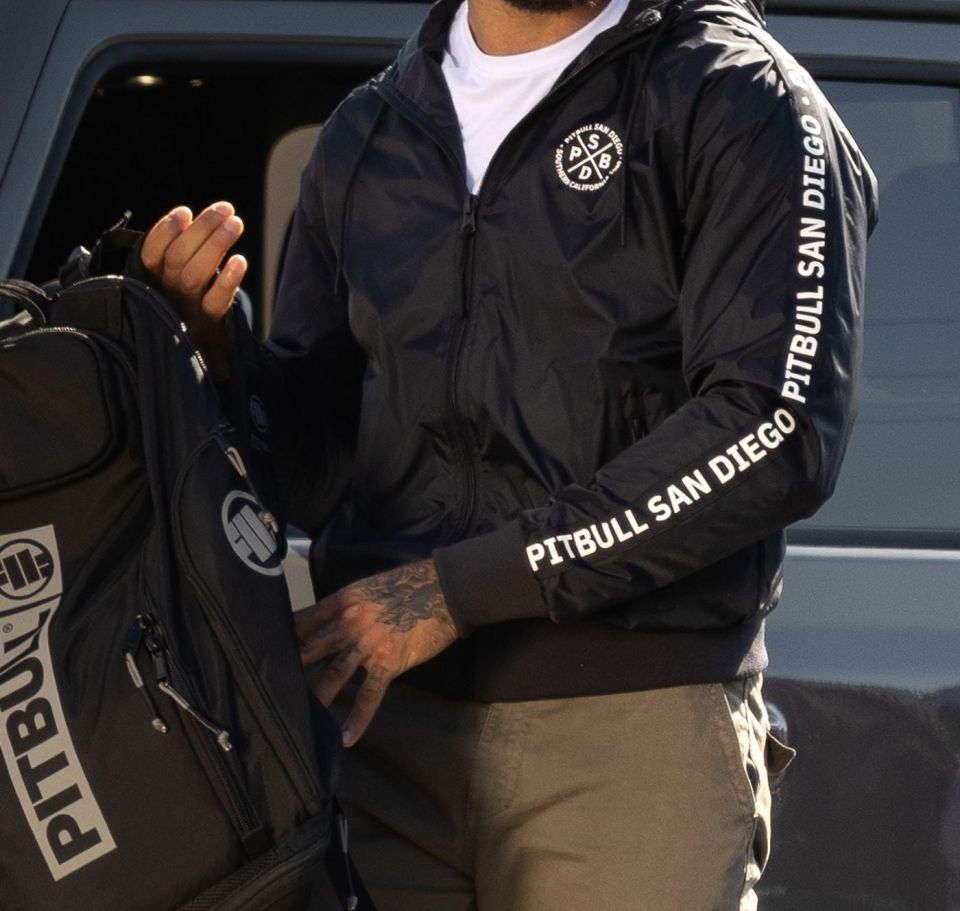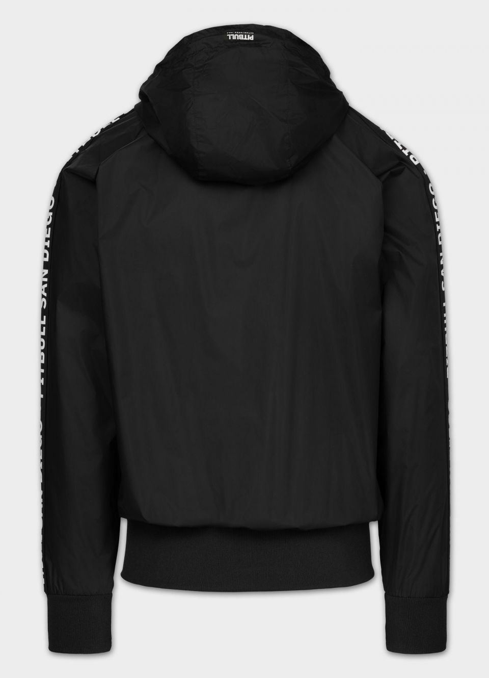 - Jacquard stripes with the "PITBULL SAN DIEGO" inscription along the entire length of the sleeves